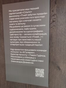 Супермаркет поділений на десять тематичних зон, які ведуть відвідувачів крізь основні сюжетні повороти фільму. У кожній зоні оживають переосмислені образи зі стрічки: ярмо зі сцени вінчання — символ шлюбу за домовленістю, вогняні коні — алюзія на культову сцену смертельного поранення Івана Палійчука. В такому просторі мова вже йде не про звичайні покупки, а скоріше про повне занурення в українську культурну спадщину.